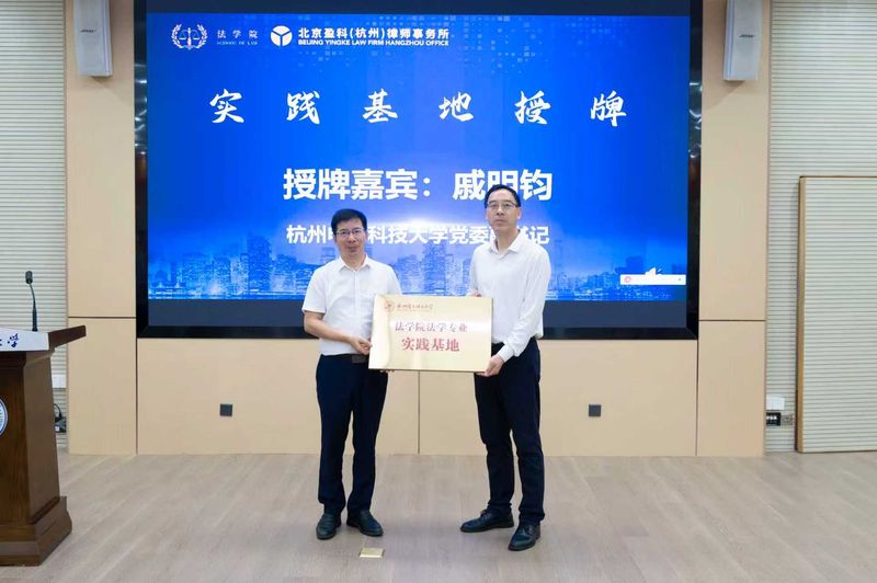 校党委副书记戚明钧为北京盈科(杭州)律师事务所授予“教学实践基地”牌匾,并为谢尚誓颁发兼职教授聘书。校宣传部副部长伍超、教务处副处长郑鹏共同为张锋平、隋正磊等实务导师颁发聘书。实践基地与实务导师团队的建立,将为杭电法学学子提供常态化实习岗位与一对一实务指导,有力促进学生法律实践能力的提升。