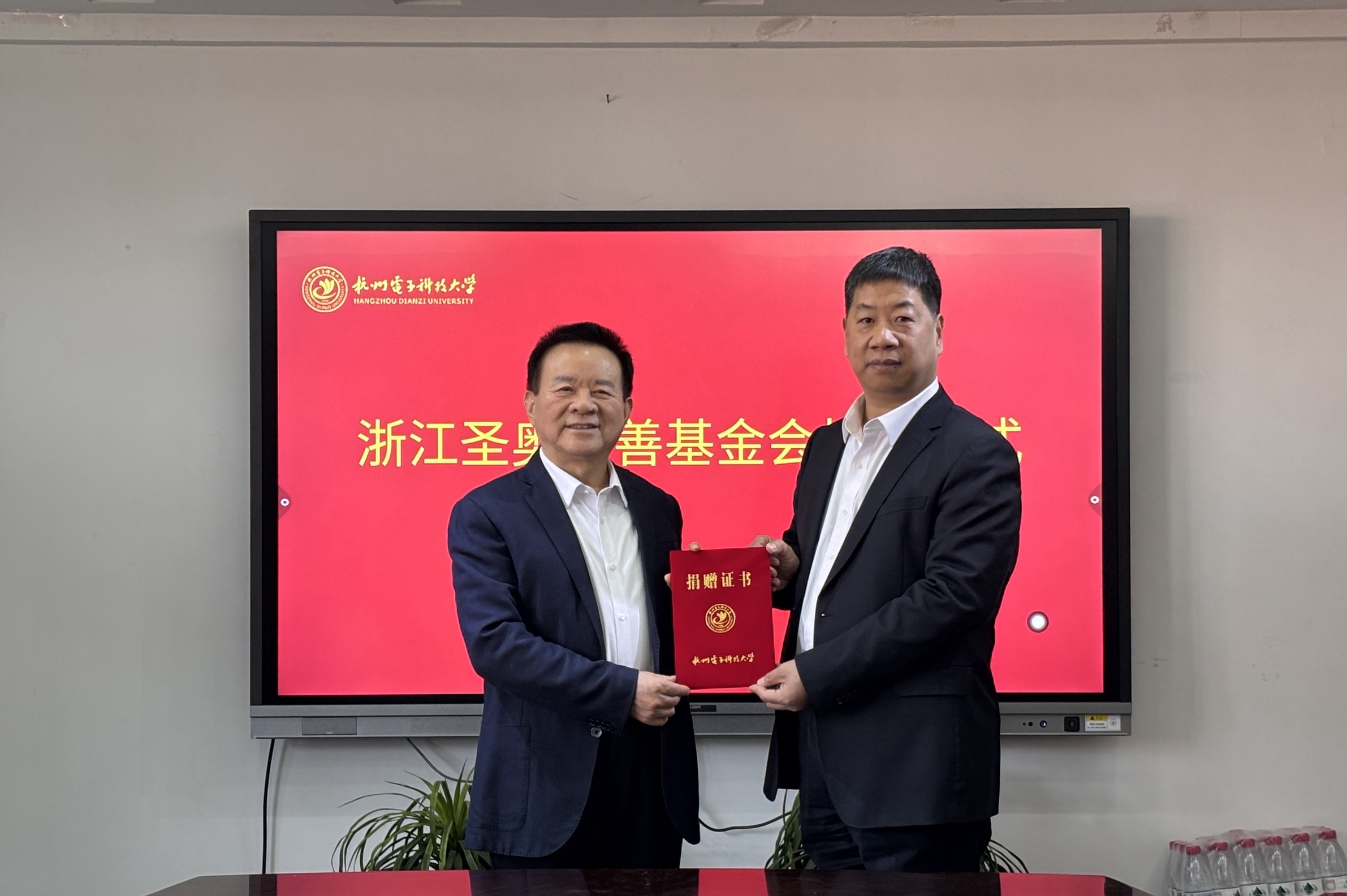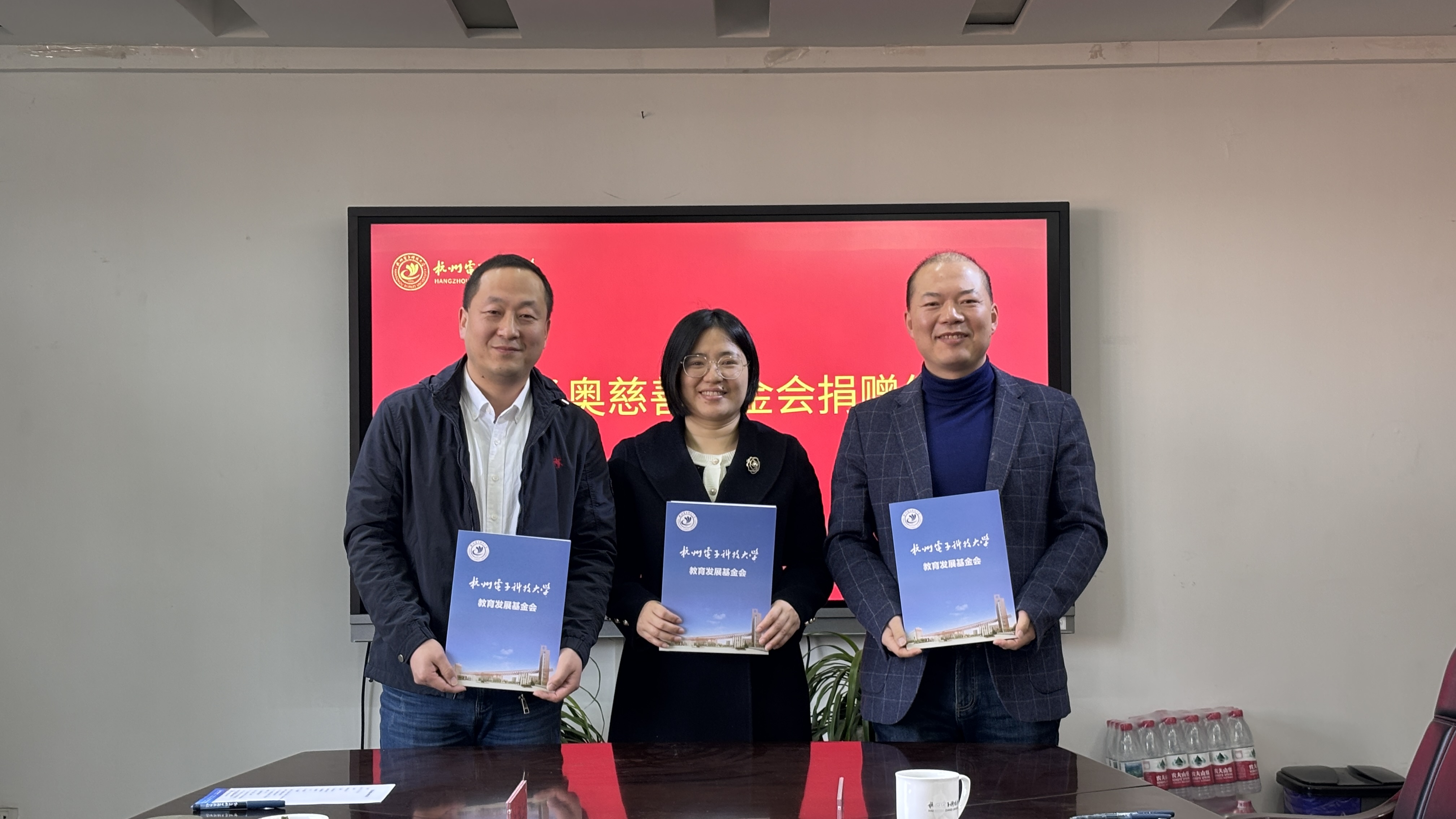 12月19日,浙江圣奥慈善基金会捐赠仪式在杭州电子科技大学行政楼五楼会议室顺利举行。我校党委委员、副校长马国进,圣奥慈善基金会创会会长郑明治、理事长杨新妃、秘书长翁颖,以及学校公共事务管理处处长林浩,管理学院院长杨伟,教育发展基金会秘书长李明等出席仪式。